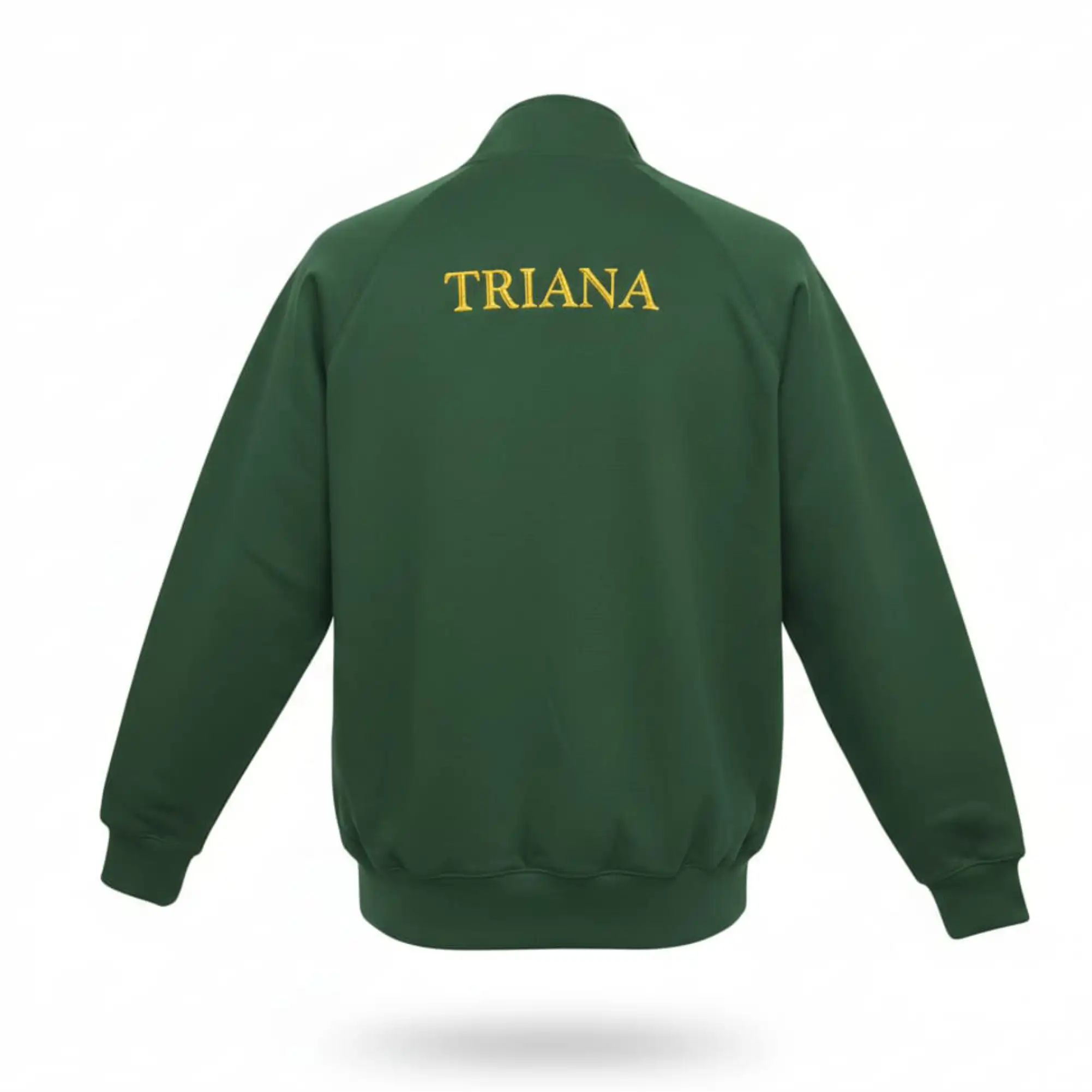 Sudadera bordada con el escudo de la Esperanza de Triana de Sevilla, con cremallera entera invisible a tono, cuello alto y bolsillos laterales.